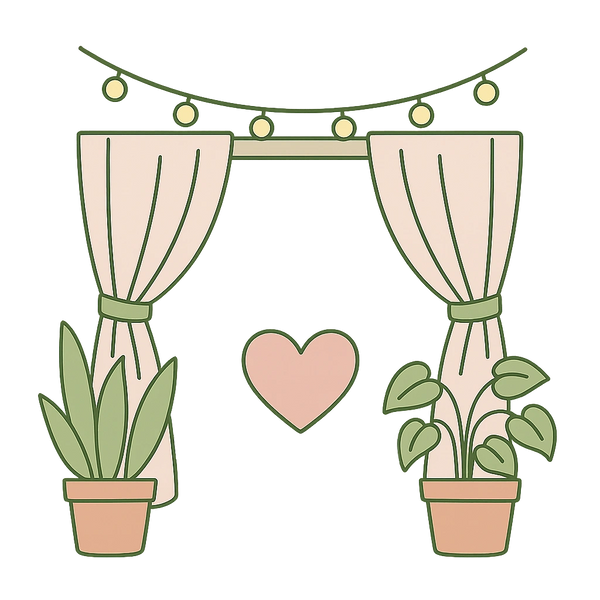 The Lightheart Lens studio begins with a softly lit staircase, wrapped in gentle string lights that guide you into a calm, cozy space. At the bottom, you’ll step into my 14×14 studio — wrapped in white curtains and ceiling drapes that give it the feel of a cozy, magical circus tent.